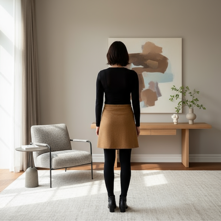 Caramel Eco-friendly TUKUAN, versatile three-season eco-friendly overskirt that can be worn as a shawl.